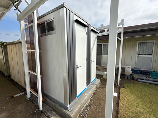 長年使用されていた仮設トイレが老朽化し、衛生面・安全面での課題が発生していました。お客様より、「より快適で清潔感のあるトイレに更新したい」とのご相談をいただき、当社より『エポックトイレ』の新設をご提案させていただきました。