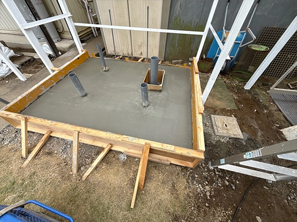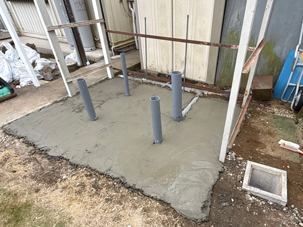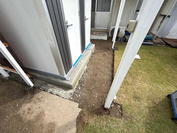 - 水平・高さを調整し、耐久性の高い基礎を施工