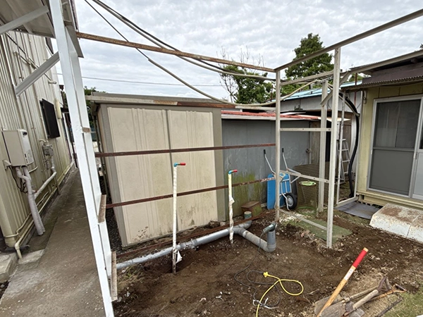 - 地中の排水部材やアンカーも取り外し、清掃・整地を実施