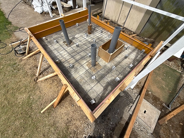- 整地後、砕石転圧・捨てコン打設・型枠設置・コンクリート打設