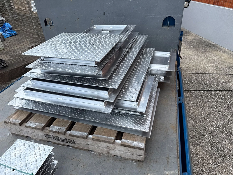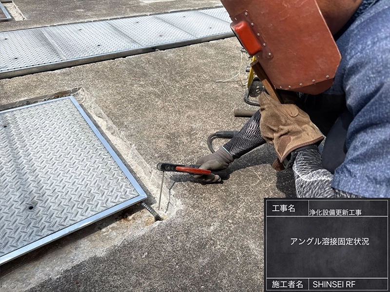 - 現場寸法に合わせて新規製作した縞鋼板蓋とLアングルを設置
