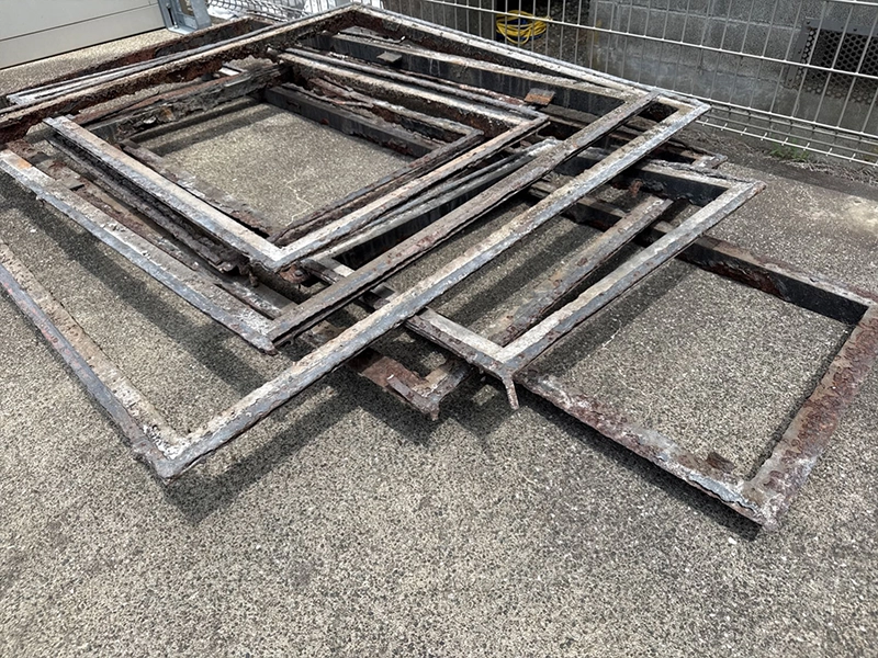- 錆びた縞鋼板の蓋とLアングルを斫り撤去
